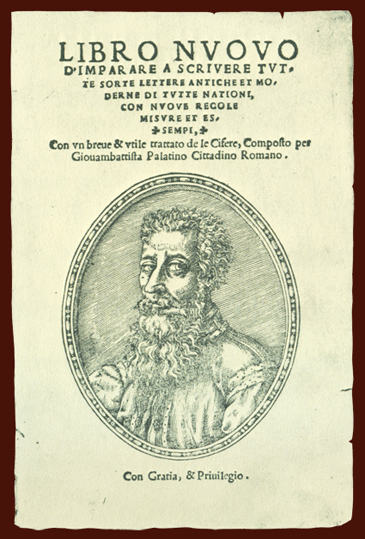 Bron: Masters of the Italic letter, Kathryn A. Atkins, ISBN 0-87923-594-2 The Newberry Library, Chicago, Illinois, Wing ZW 535.P173, 1 fly leaf